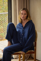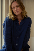 Our best-selling lounge shirt is now reimagined with a fit designed just for our Boyville crew. This oversized, slouchy silhouette is crafted from breathable triple-layer cotton gauze, striking a great balance between relaxed comfort and refined style with its lightweight feel and structured collar. It is a light and flowy fit that is great for this spring and summer.