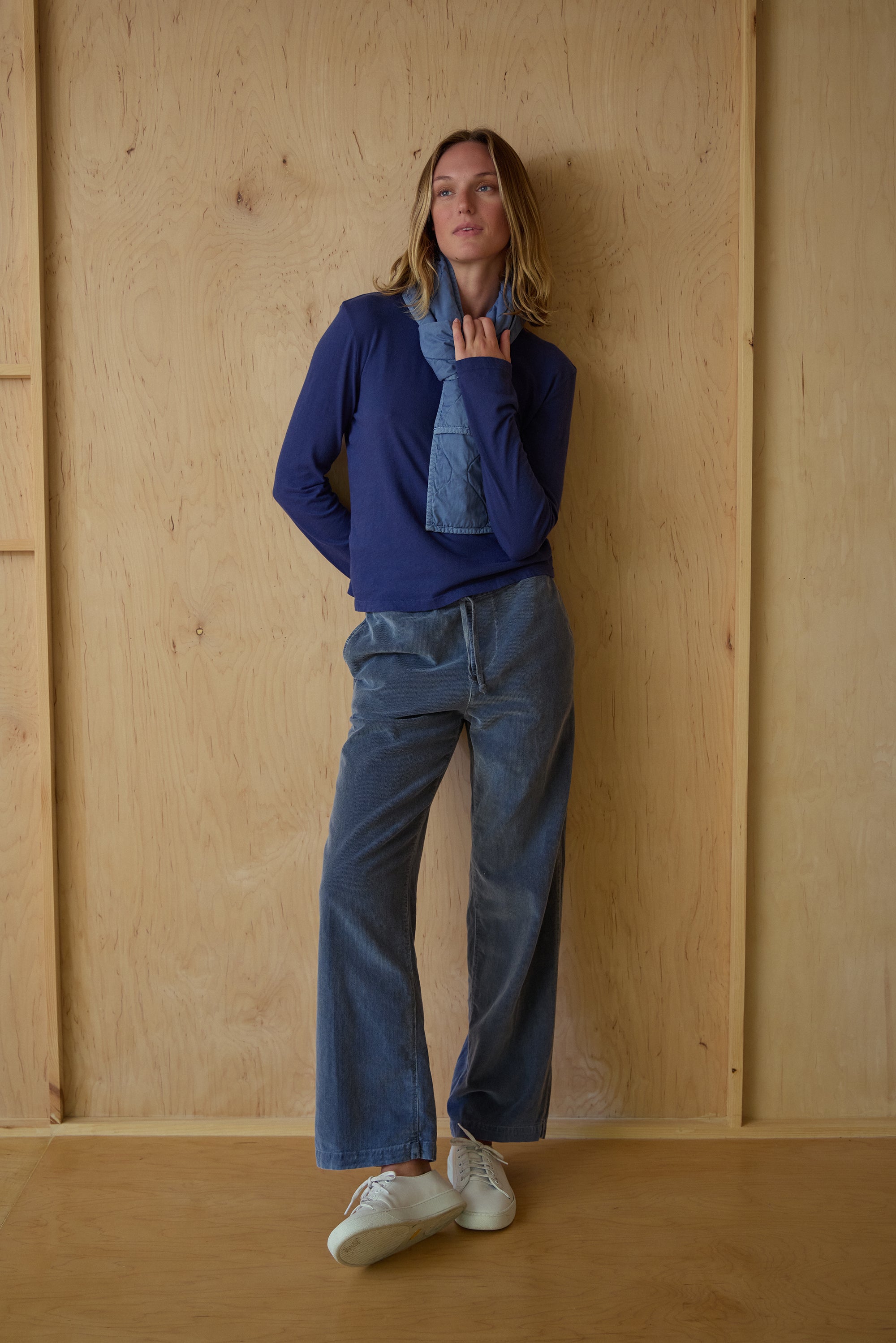 -Sits comfortably on the waist-More ease through hip & thigh-Straight leg