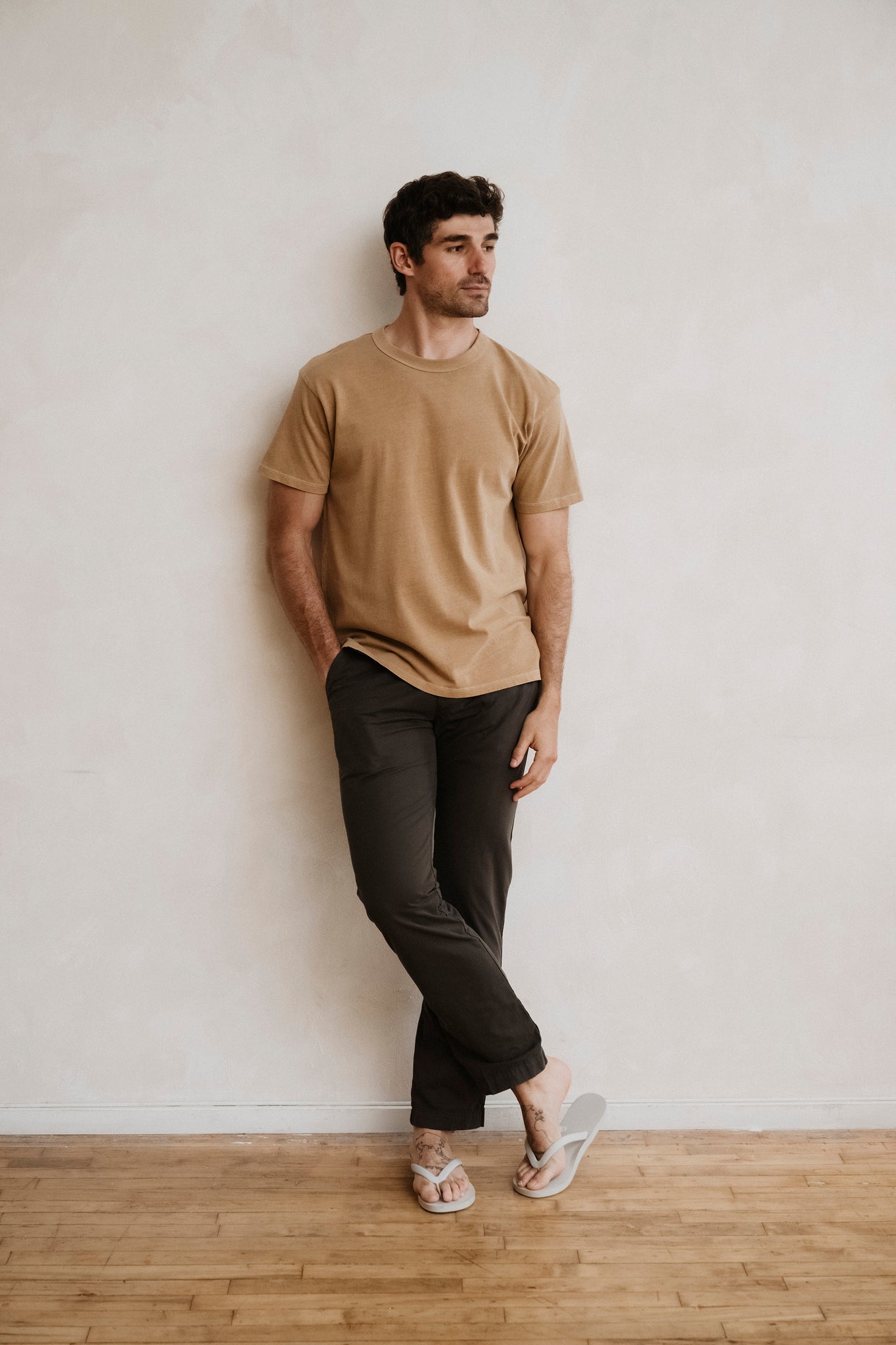 Discover the SK952 lounge pant, designed with a drawstring waistband in breezy poplin or soft triple gauze, finished with a modern tapered leg.