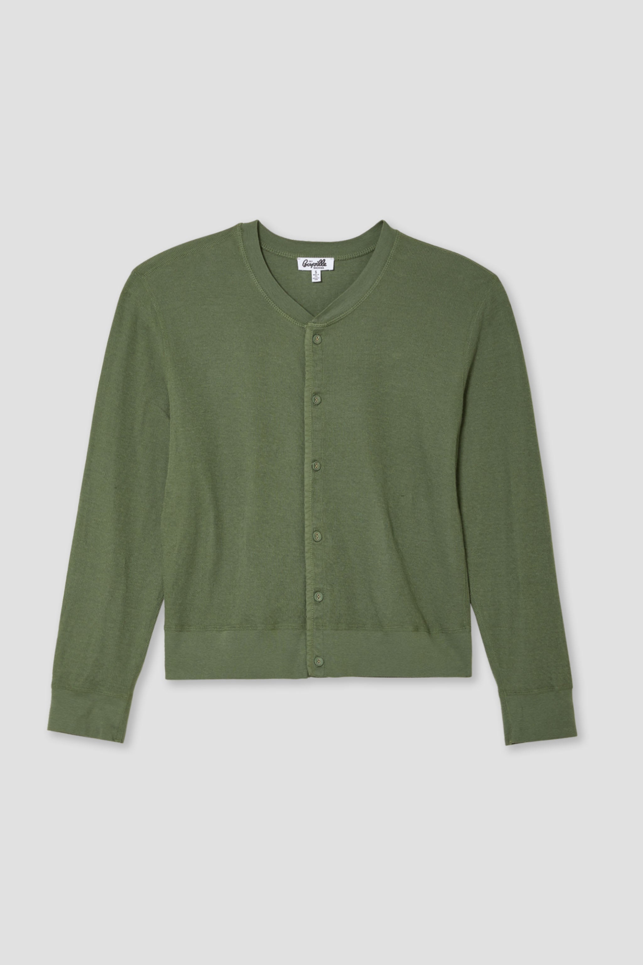 Designed with a 1x1 rib collar, chunky rib cuffs and hem, and a front placket finished with woven binding and reinforcement for lasting durability.