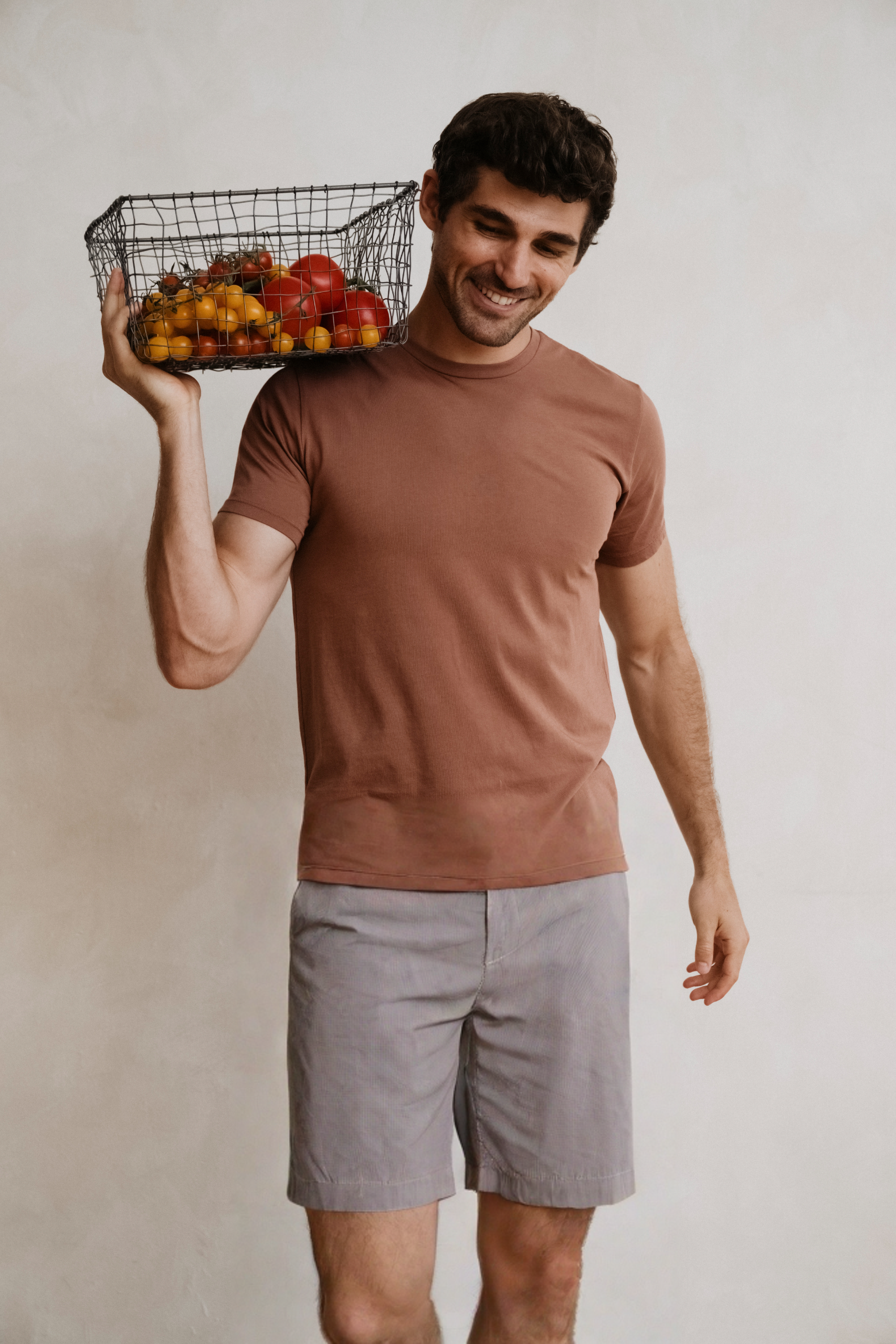 Anselmo is wearing 32W short and size L tee.