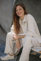 Our best-selling lounge shirt is now reimagined with a fit designed just for our Boyville crew. This oversized, slouchy silhouette is crafted from breathable triple-layer cotton gauze, striking a great balance between relaxed comfort and refined style with its lightweight feel and structured collar.  It is a light and flowy fit that is great for this spring and summer.