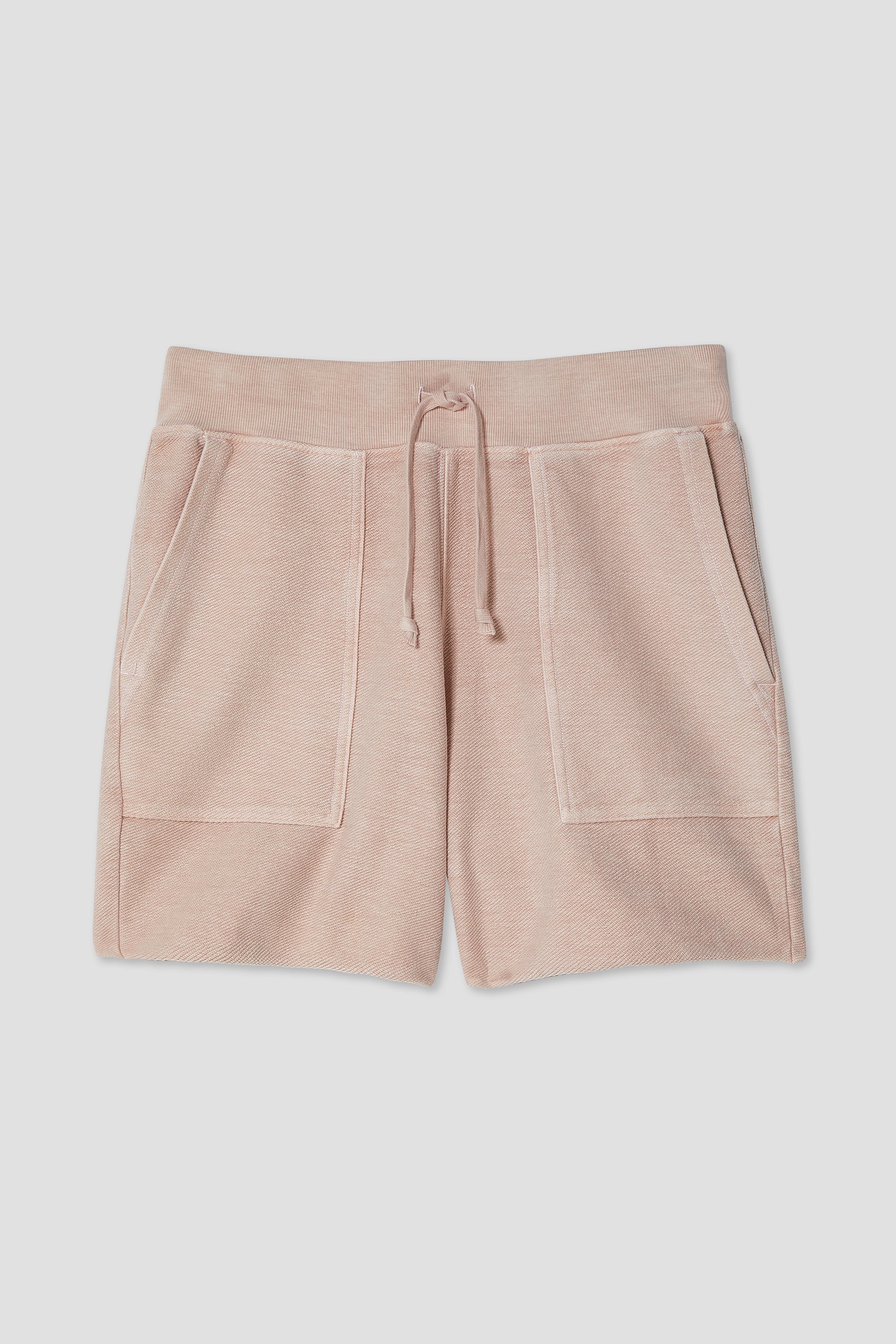 This Men's sweat short has patch pockets with raw hem features utility in a laid-back attitude.
