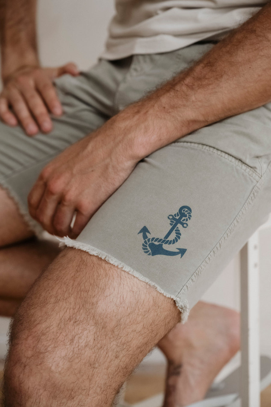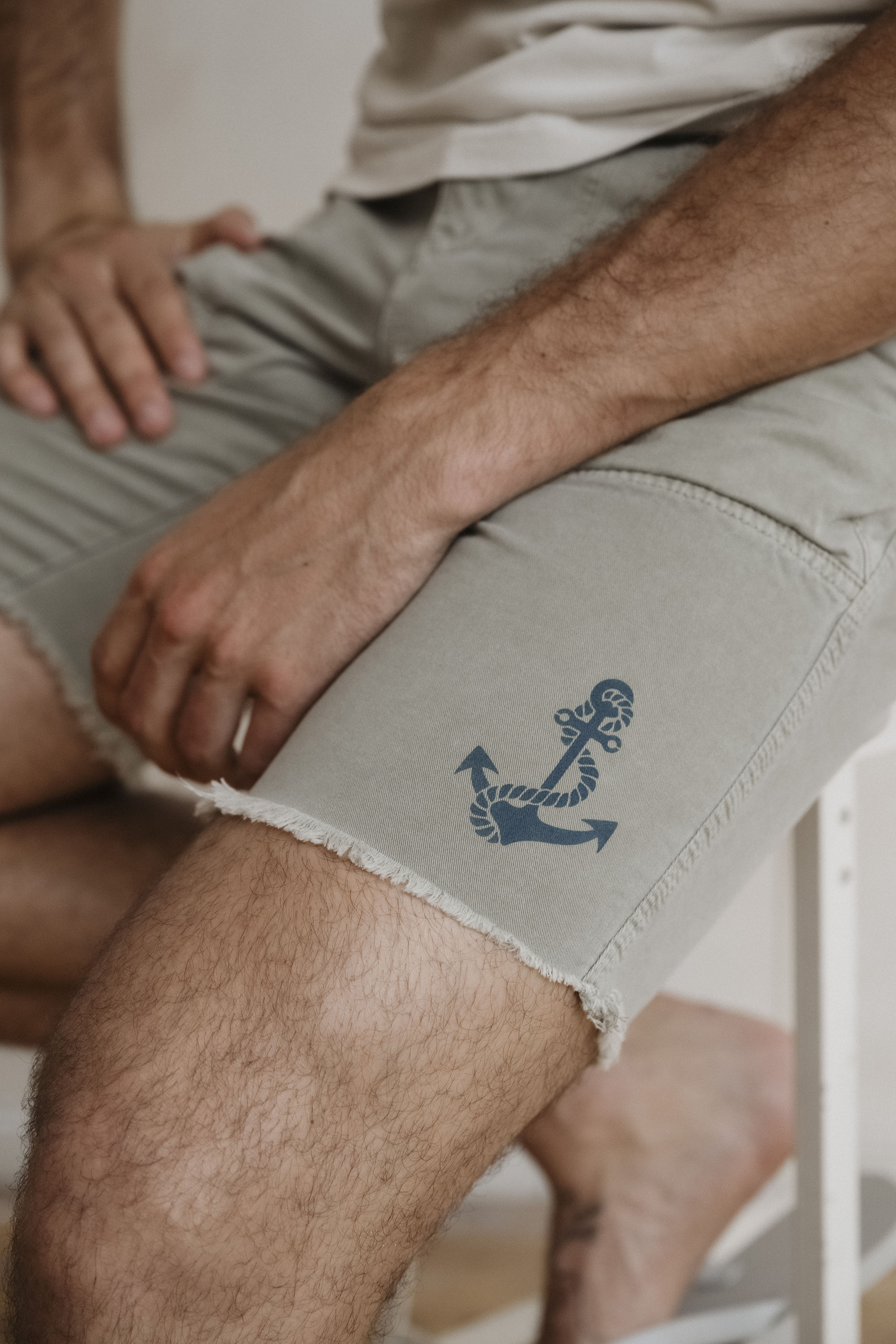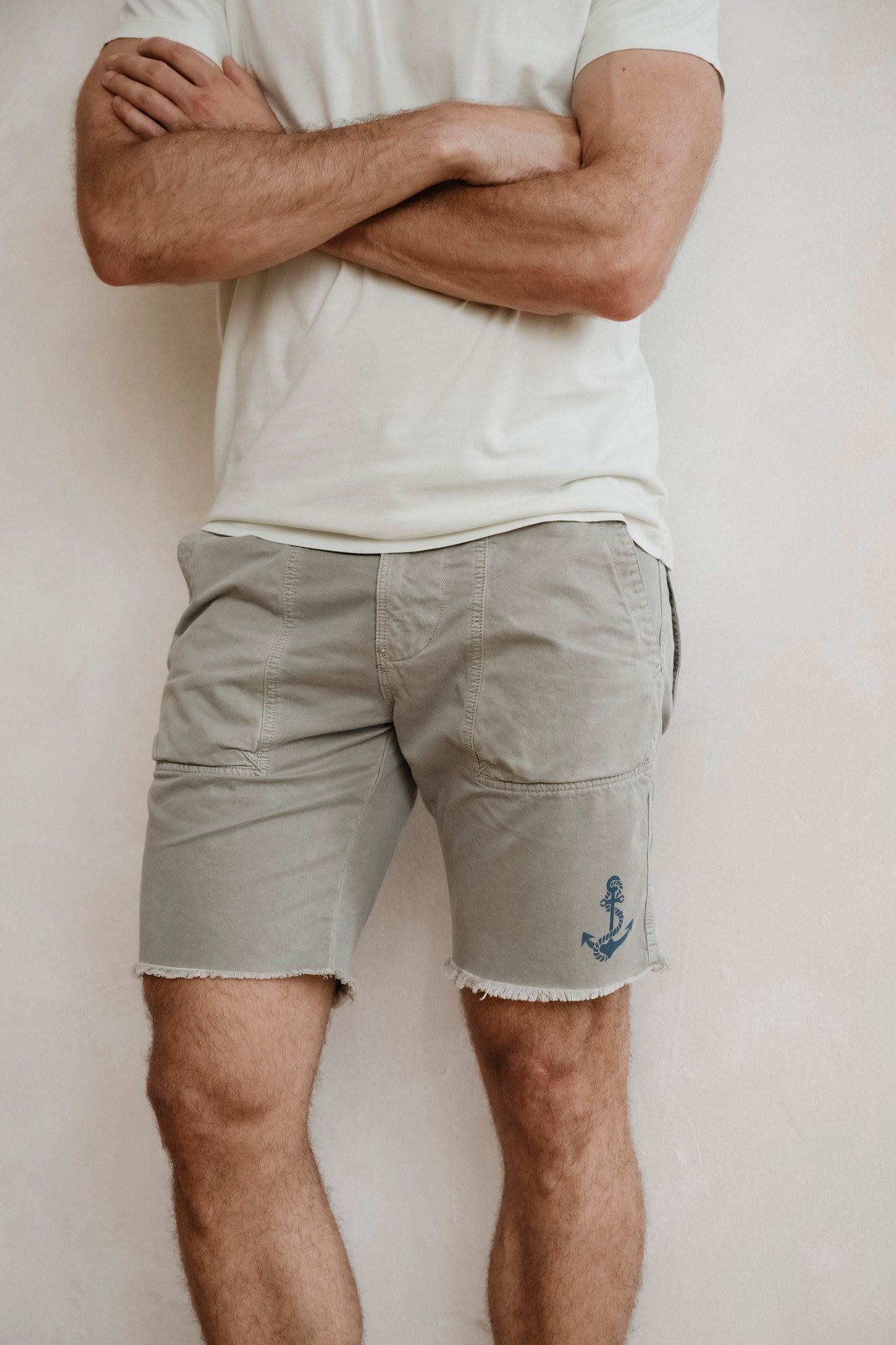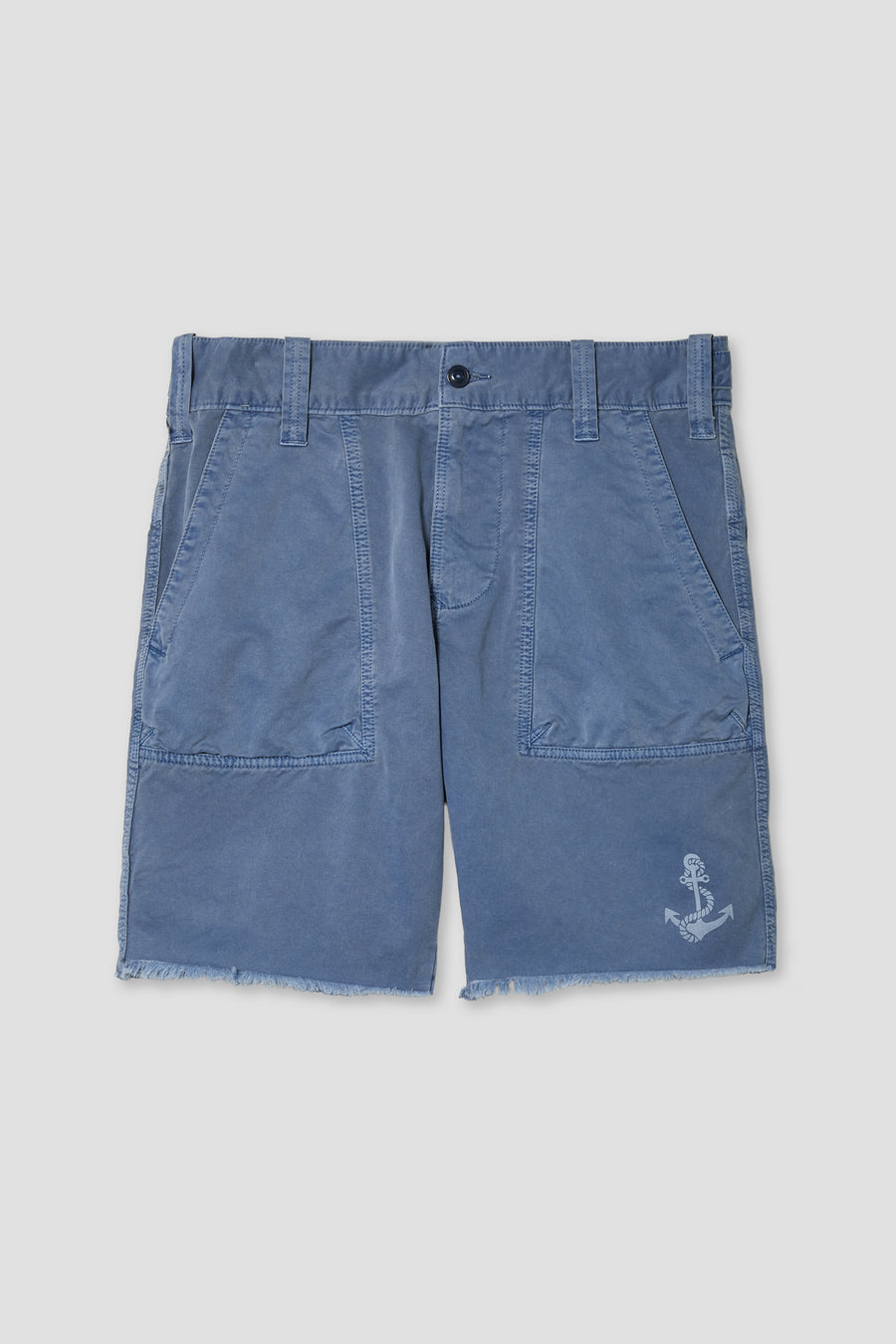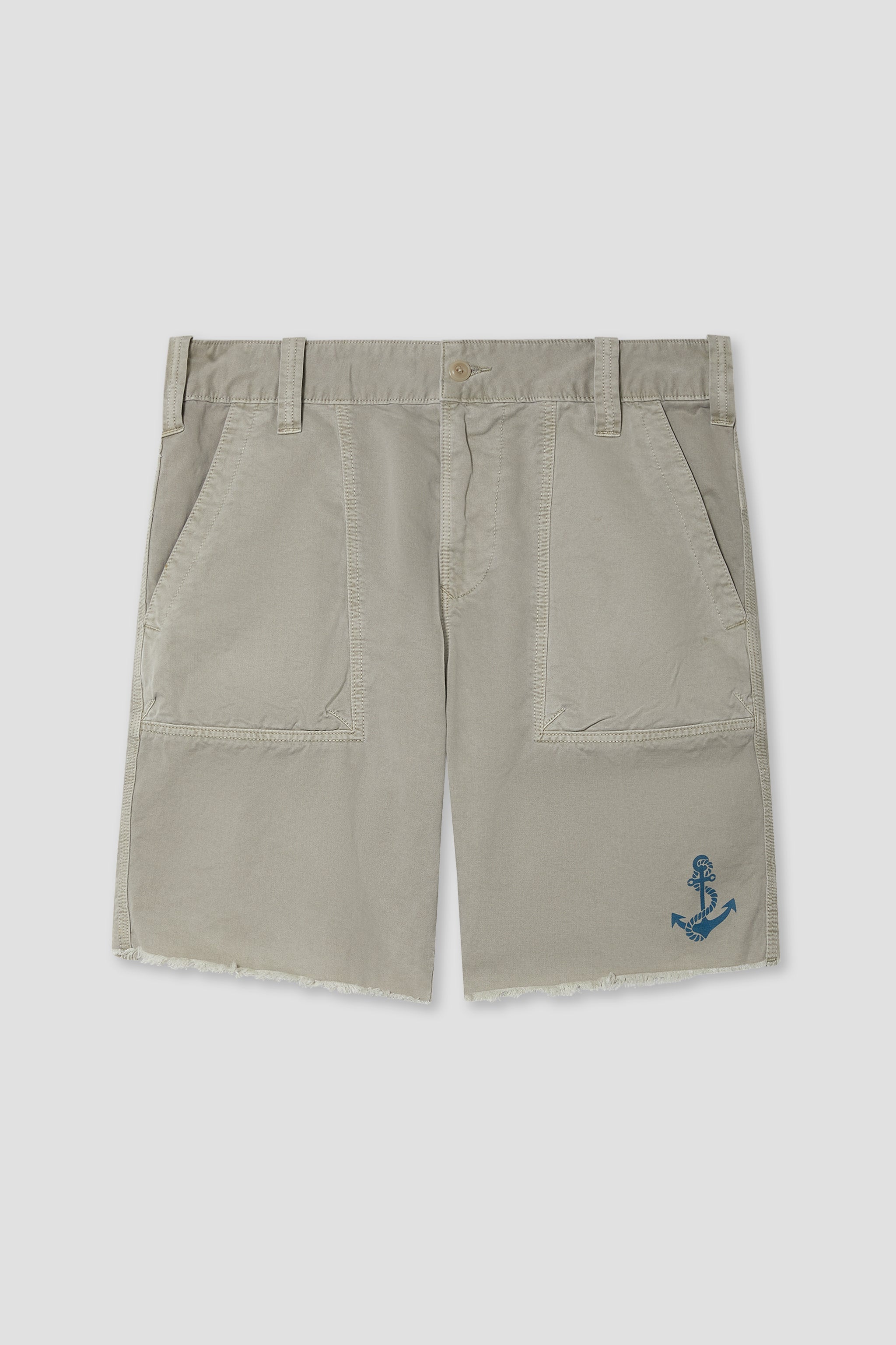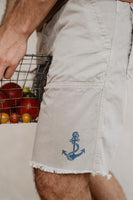 A subtle anchor print at the left hem nods to nautical roots, while utility-driven construction sets it apart: front patch pockets, a distinctive paper bag gusset back pocket for added volume, and a sturdy build that’s ready for daily wear.