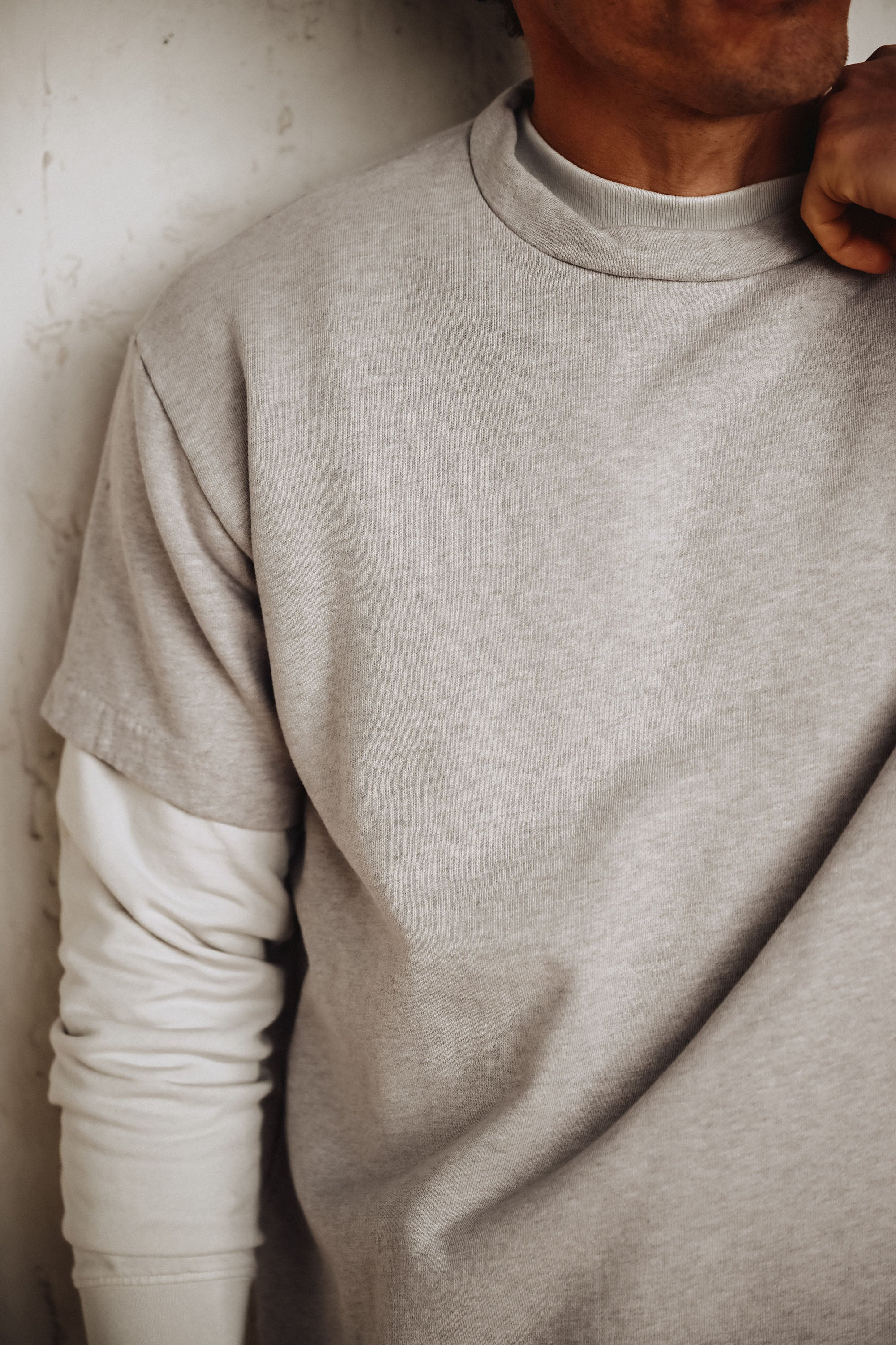 Enjoy our boxy crew neck sweatshirt in 100% organic heather terry.
