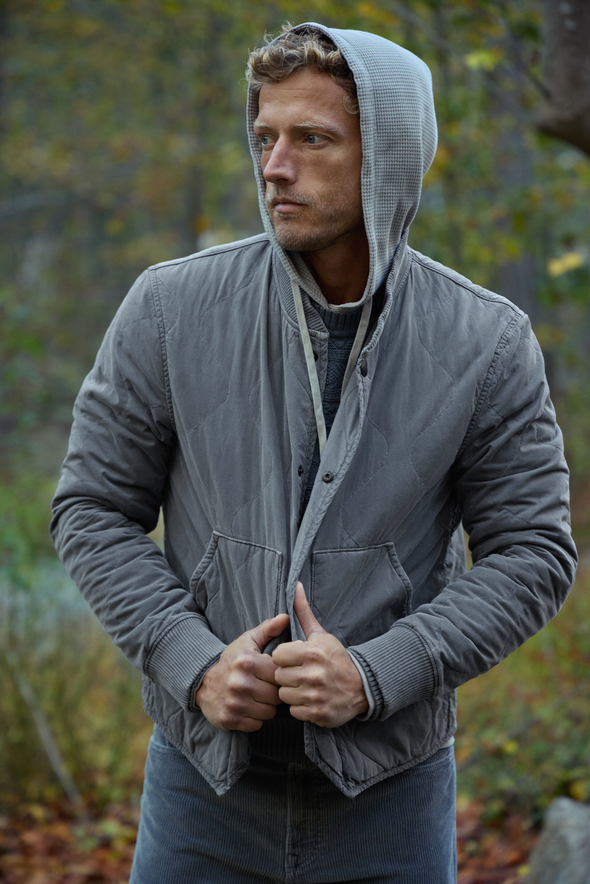 Seal in warmth without the bulk. The Quilted Bomber is designed with lightweight insulation that offers just the right amount of protection for crisp mornings and cool evenings—your reliable go-to for unpredictable weather. A baseball collar, snap-front closure, and slightly cropped body give it a clean, modern silhouette that pairs easily with everything.