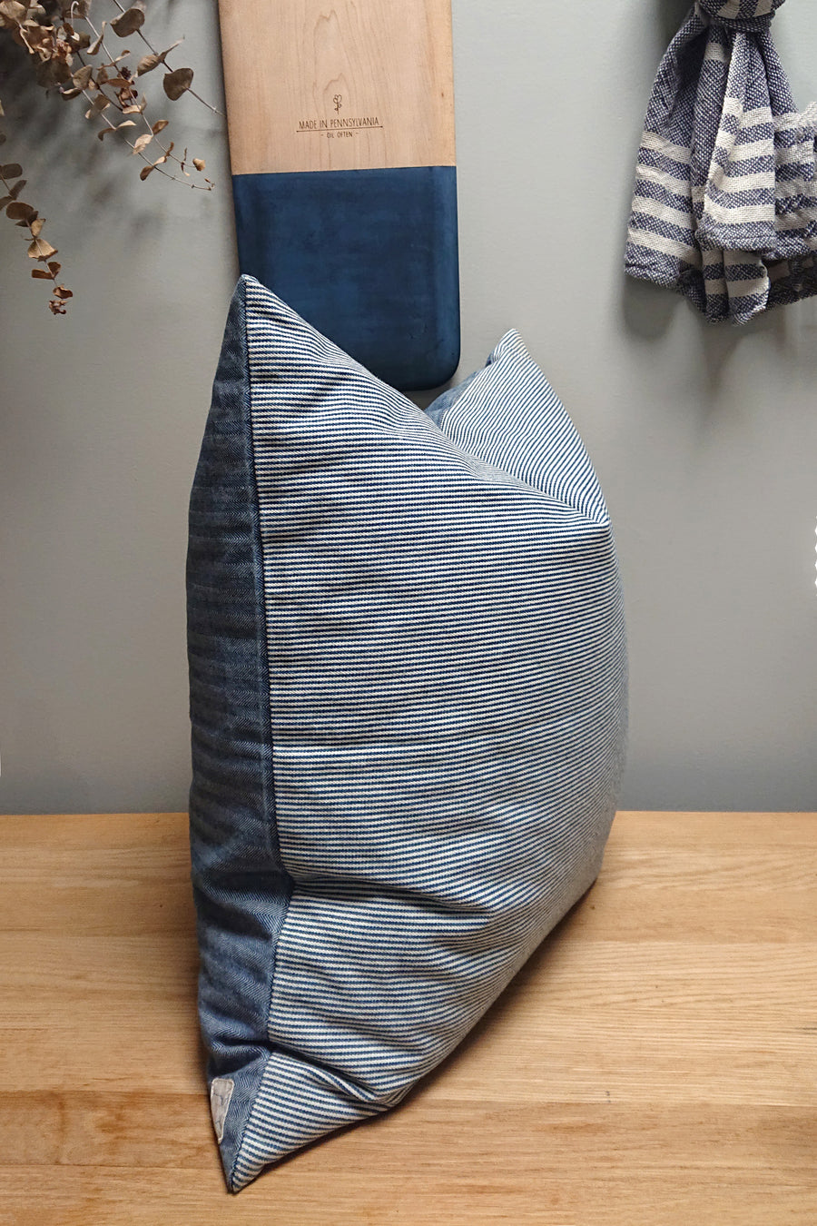 Indigo Stripe Pillow Stripes Front and Herringbone Back