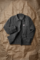 The Drill Chore Jacket has double patch pockets with a hand warmer on the top and flat pocket on the bottom.