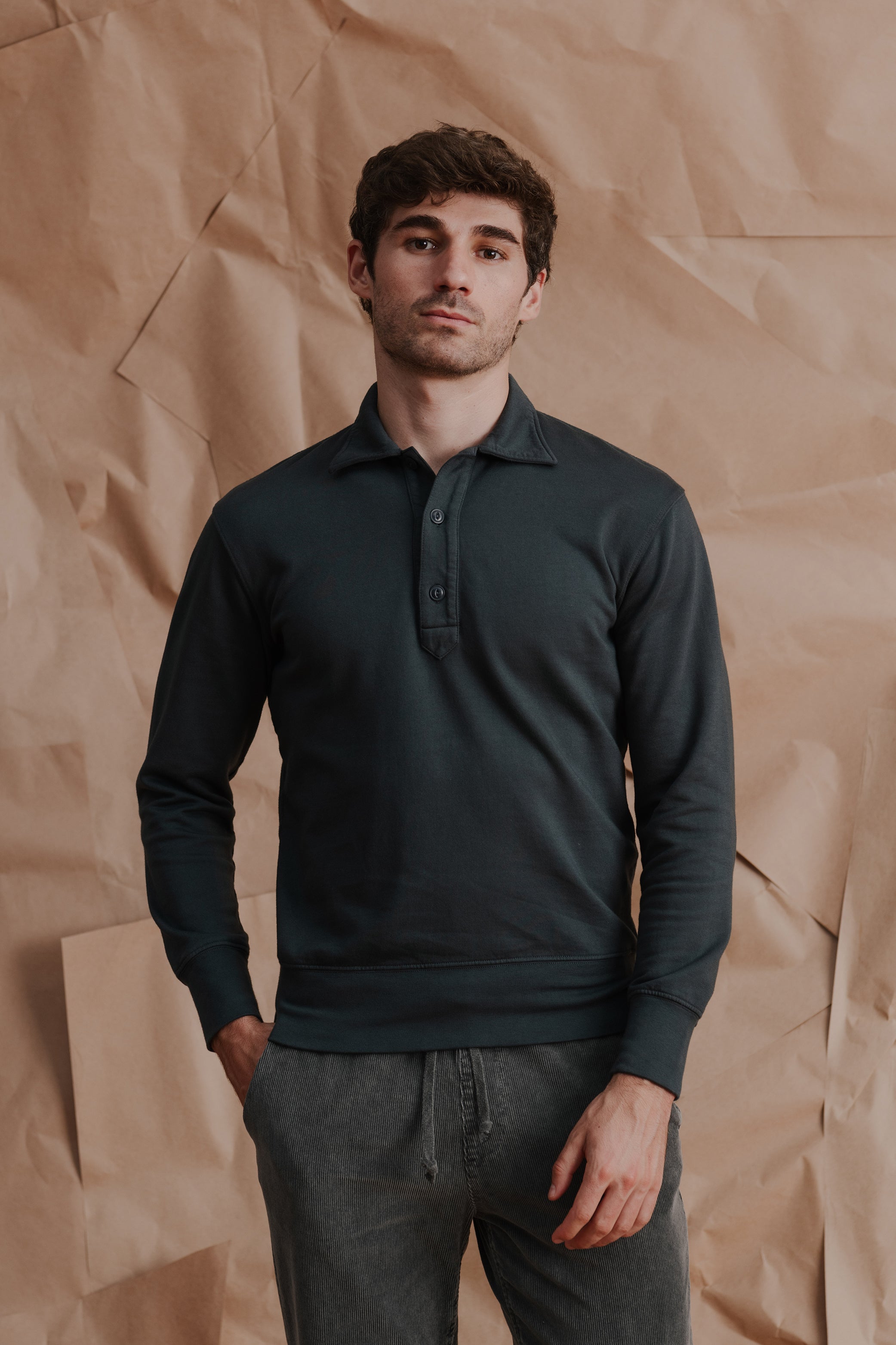 Supima fleece takes everything you love about a super soft sweatshirt and wraps it in the spirit of a rugby polo. it's casual without trying too hard, with just the right amount of structure to keep it versatile.
